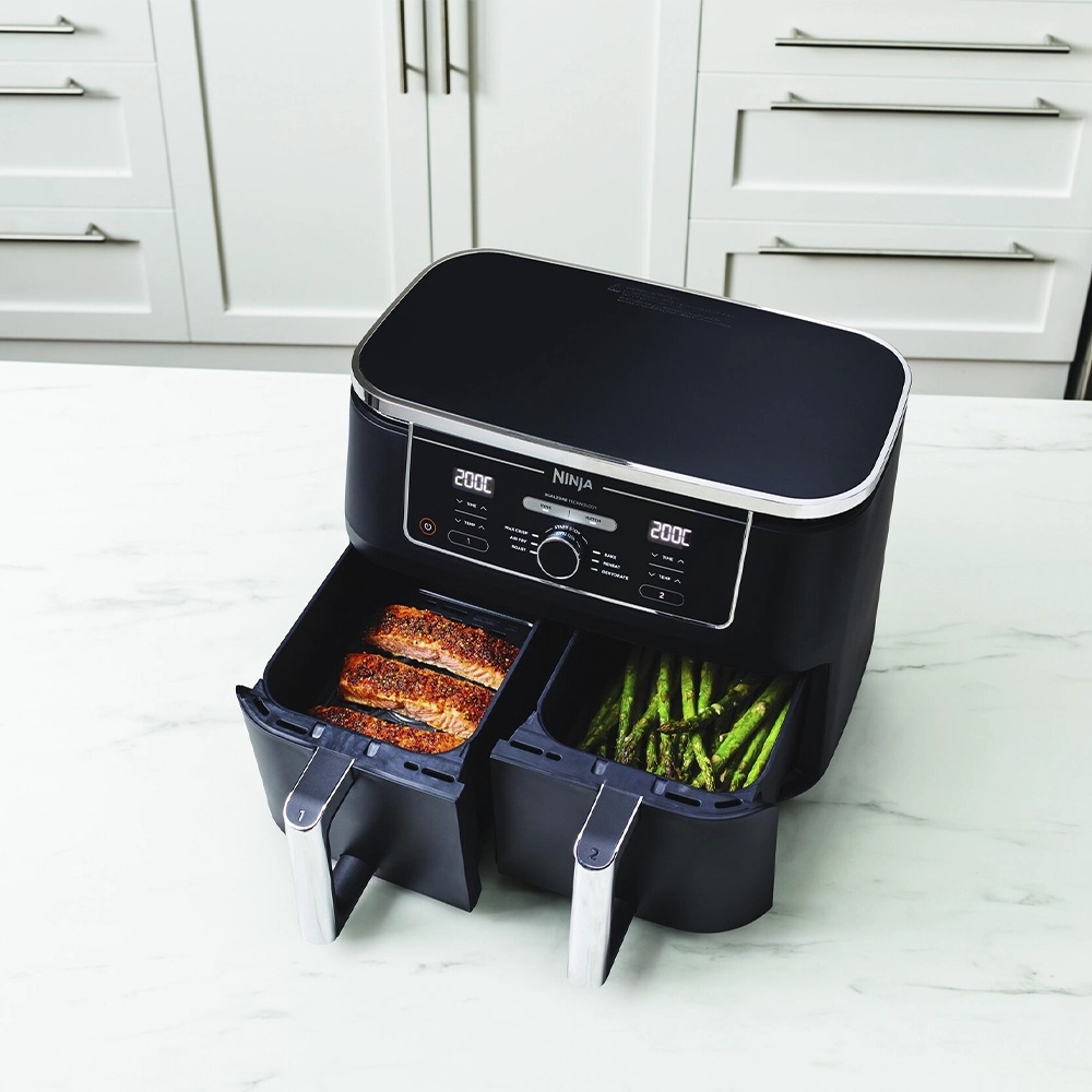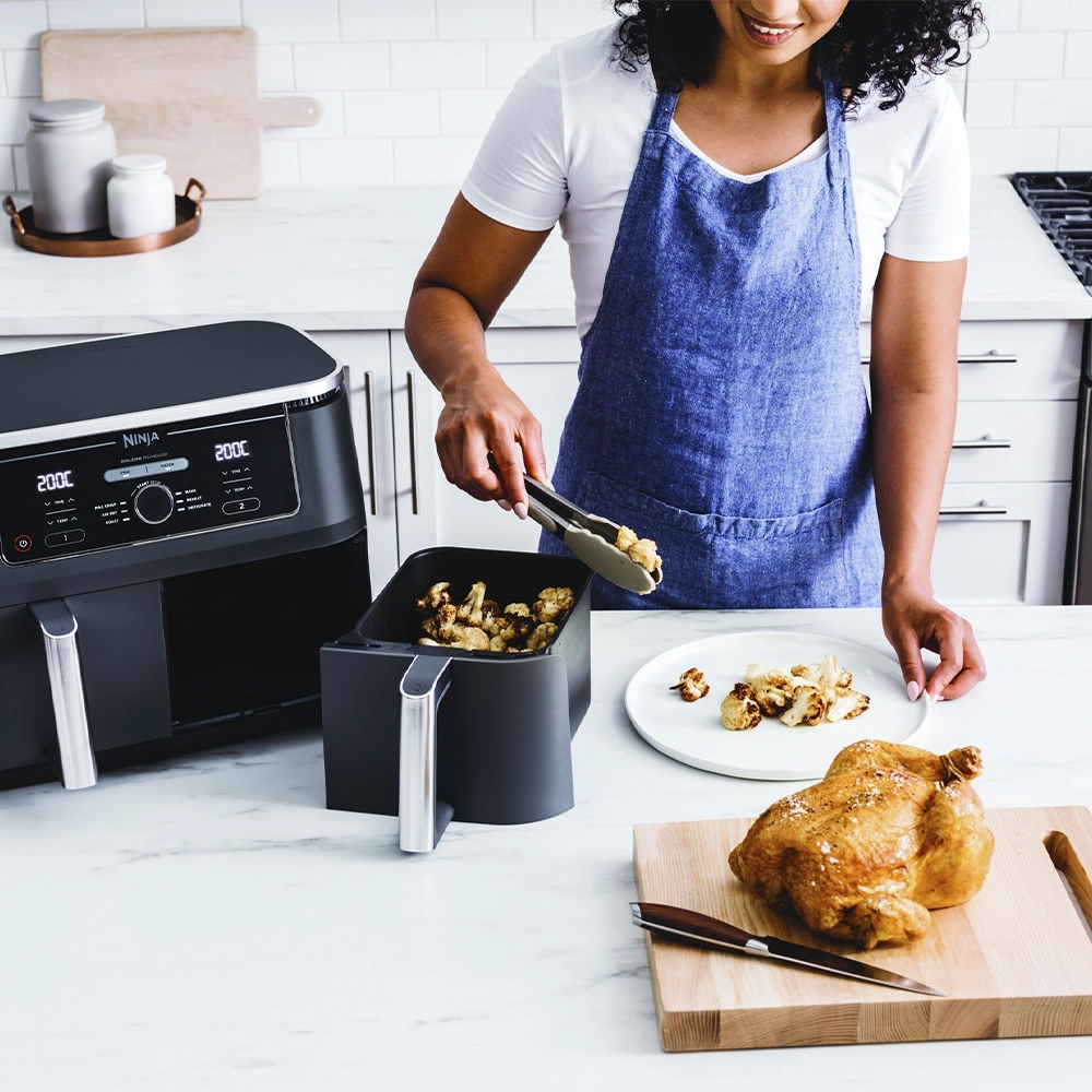 Ninja AF400EU 9.5L არის მრავალფუნქციური აეროგრილი, რომელიც აერთიანებს Air Fry, Roast, Bake, Reheat და Dehydrate რეჟიმებს ერთ მოწყობილობაში. 2470 W სიმძლავრე და 9.5 ლ მოცულობა საშუალებას გაძლევთ მოამზადოთ დიდი რაოდენობის კერძები სწრაფად და ჯანსაღად. მარტივი კონტროლი ხდის მას კომფორტულსა და პრაქტიკულ სამზარეულოსთვის.